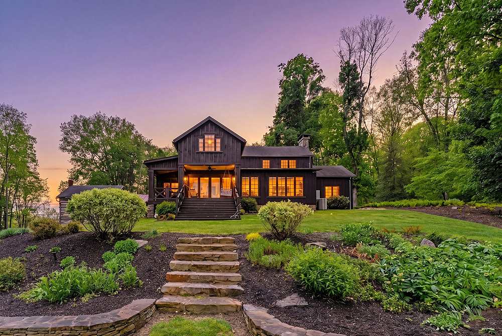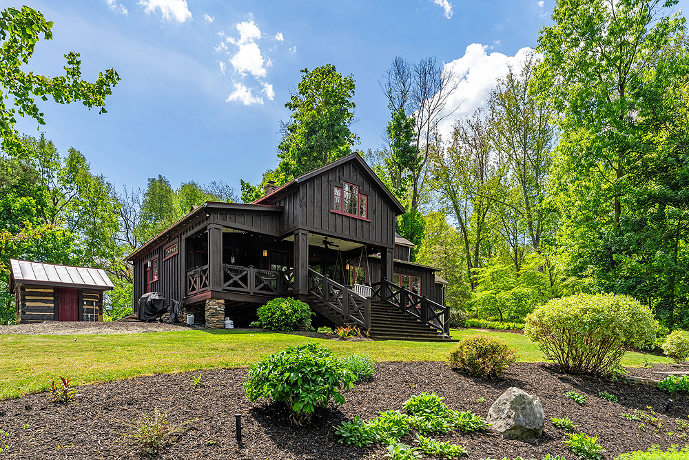 The ultimate in privacy, Shenandoah Overlook is accessed by a long private right of way that opens up to a gentle ridge above the river. Located along this ridge are the three cabins and outbuildings surrounded by lawns and landscaping and then woodlands beyond. At strategic points in the forest, viewsheds have been opened up to provide stunning views of the river and the Blue Ridge and Massanutten mountains. Expertly landscaped lawns and garden areas around each cabin provides outdoor living and playing space for your family, while providing four season garden interest as well.