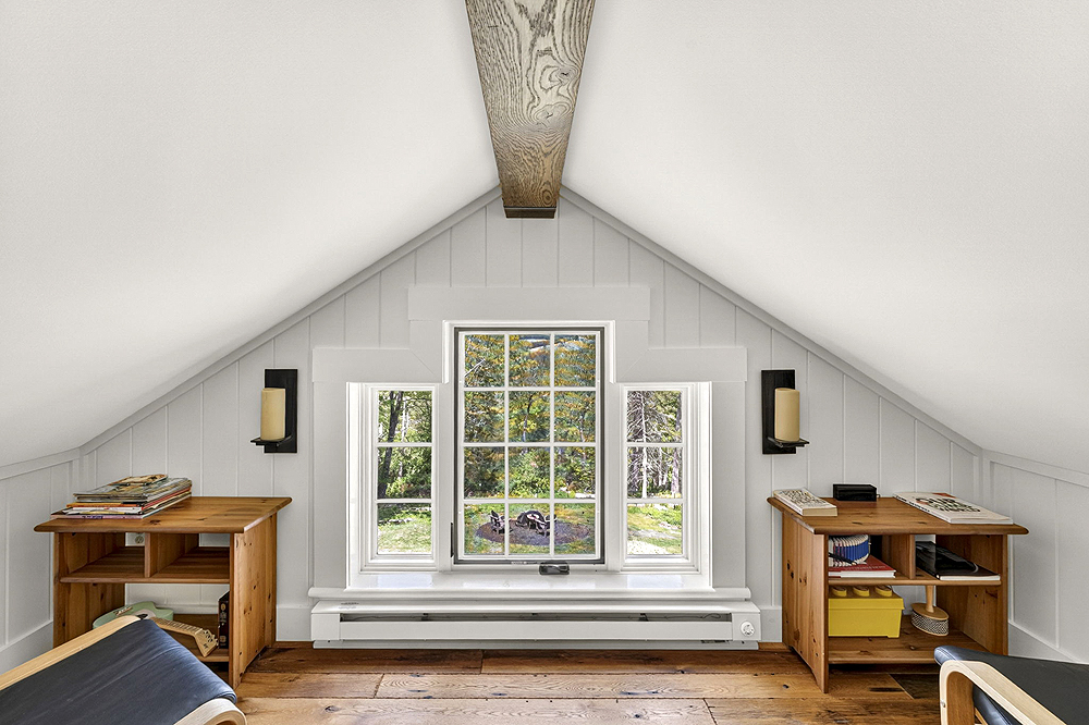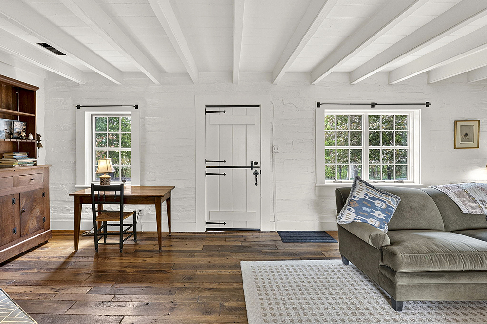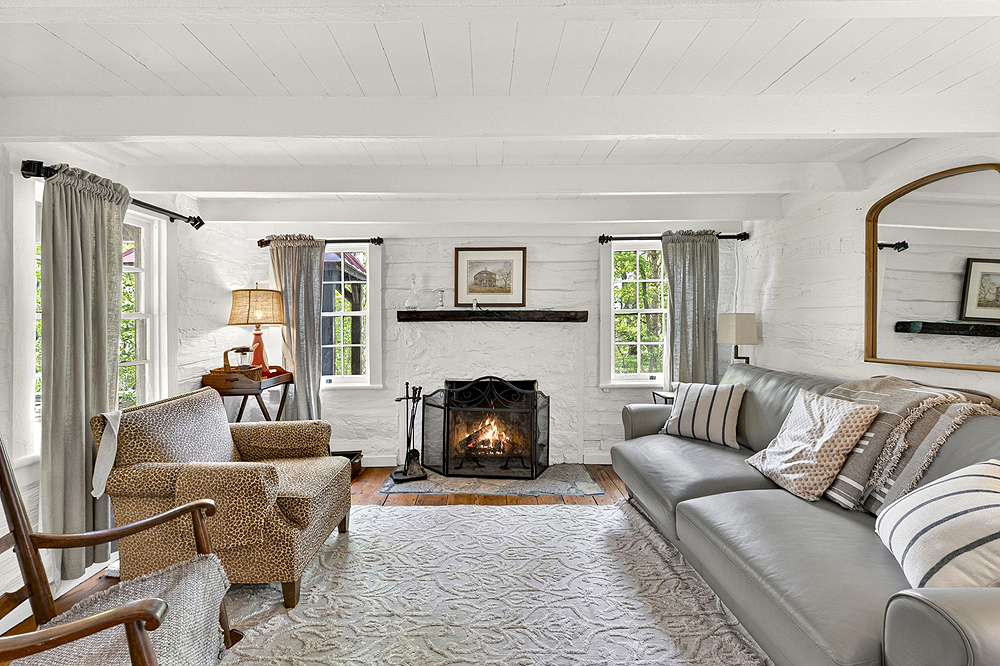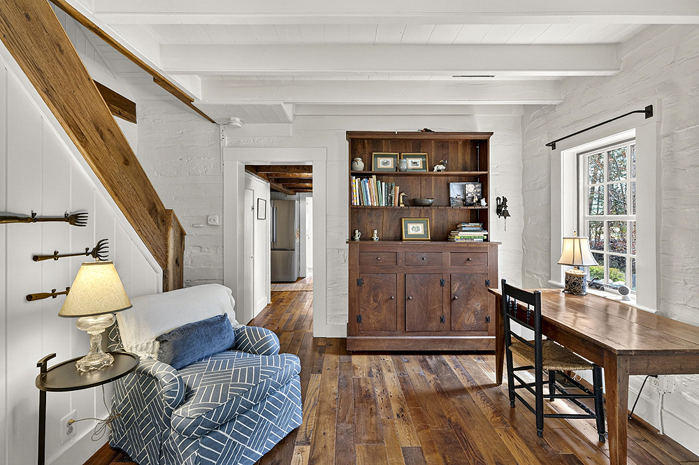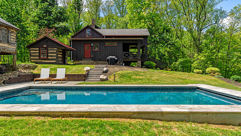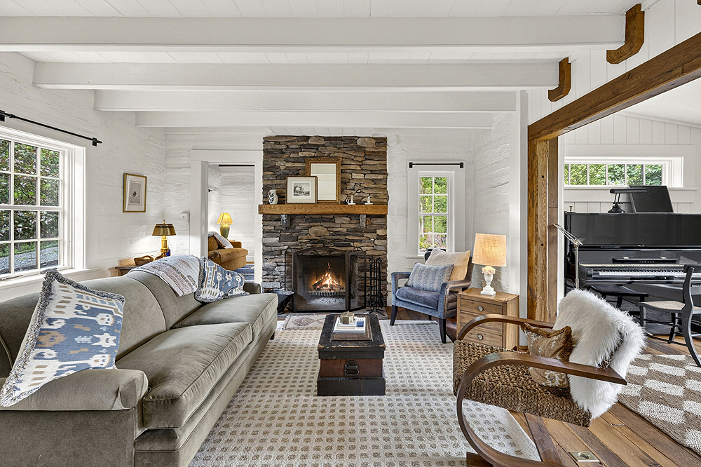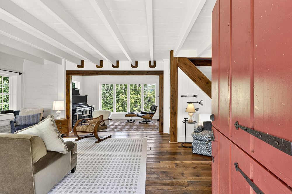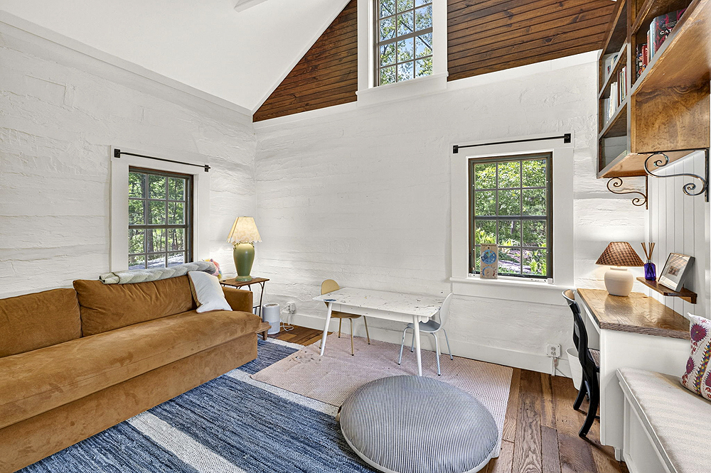 The artfully restored main cabin features indoor entertaining spaces that blend seamlessly with outdoor living areas. This comfortable home has plenty of space to unwind, enjoy the view, and even get a little work done in the library.
