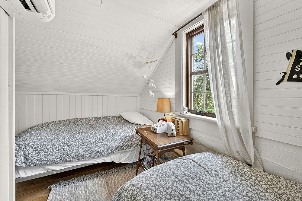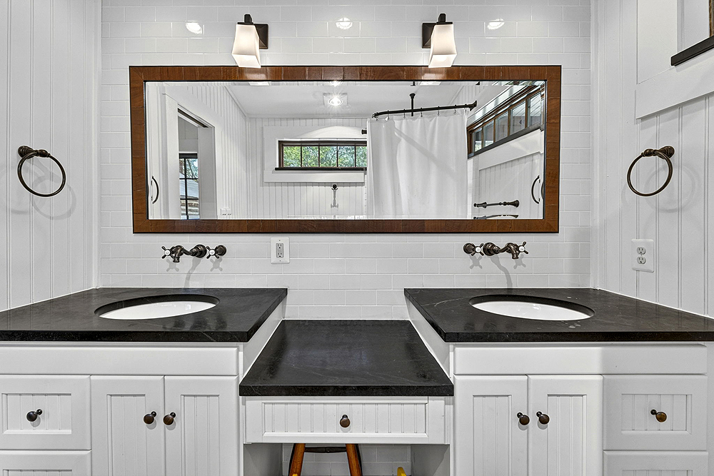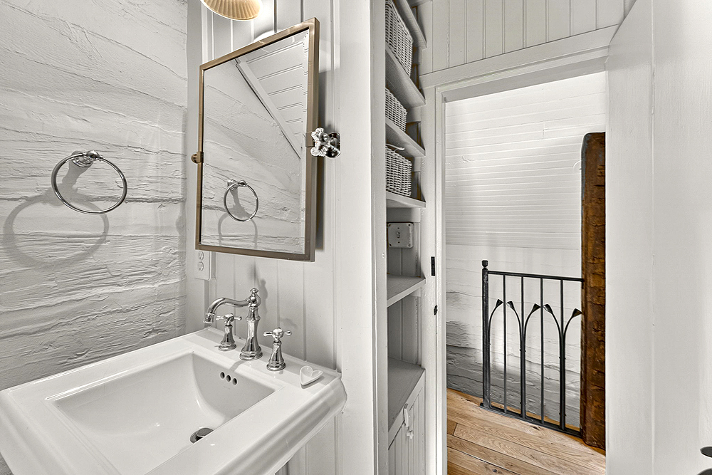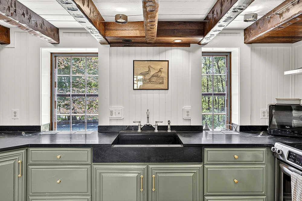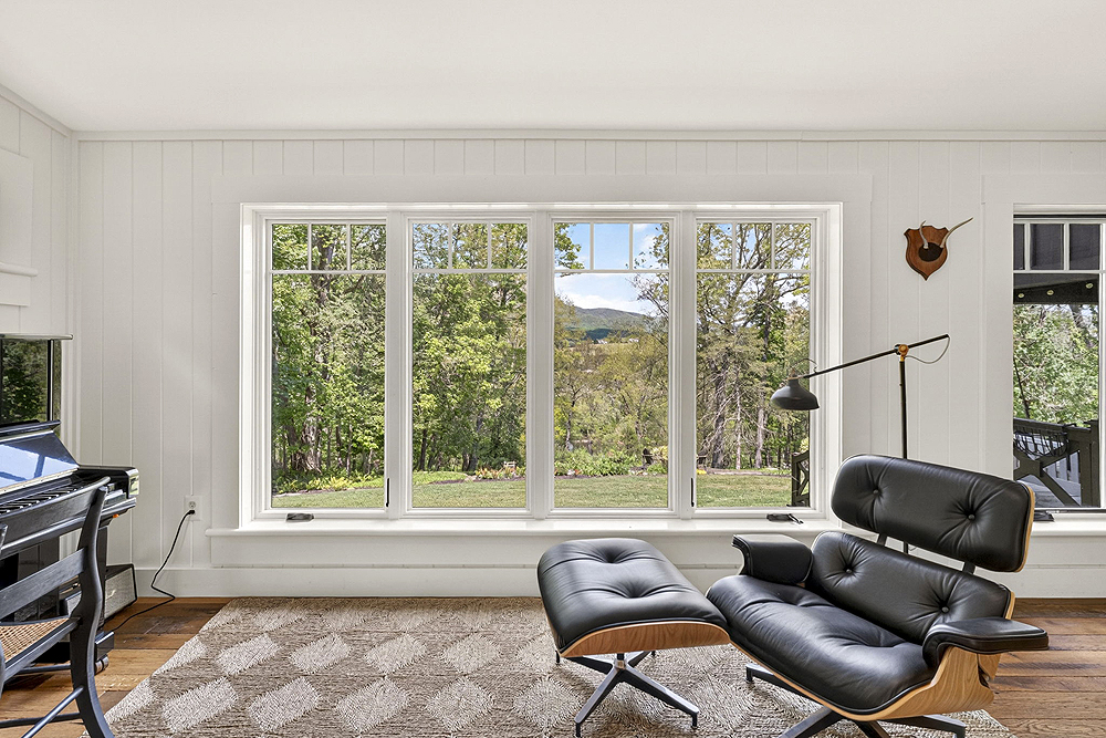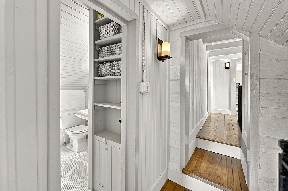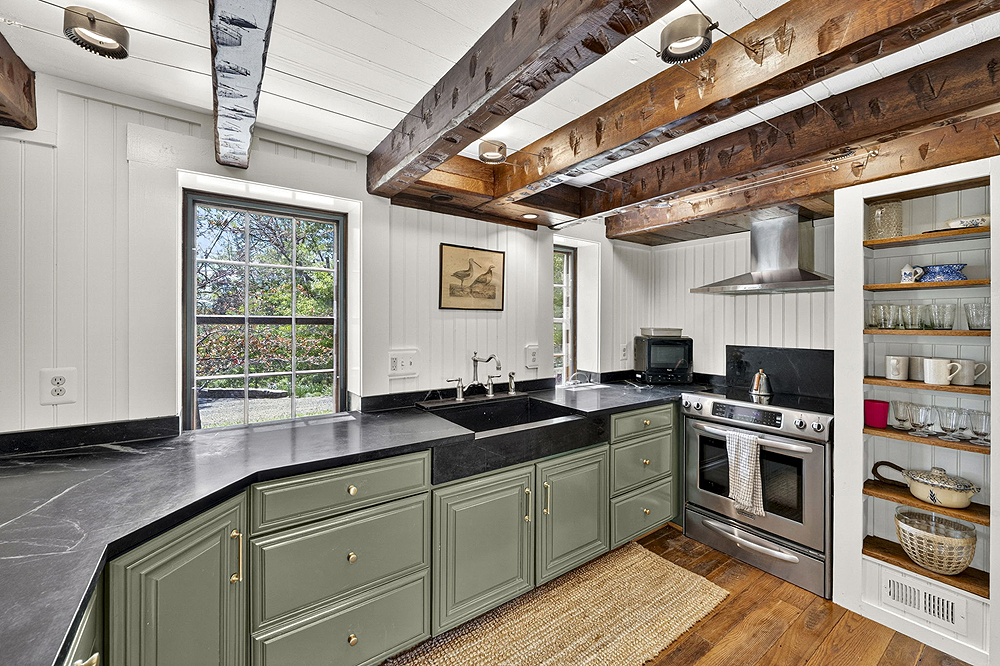 The artfully restored main cabin features indoor entertaining spaces that blend seamlessly with outdoor living areas. This comfortable home has plenty of space to unwind, enjoy the view, and even get a little work done in the library.
